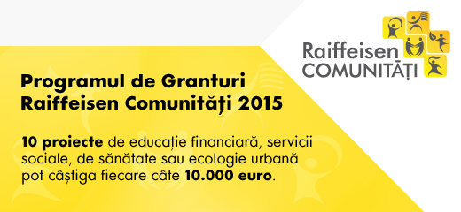 La 1 iulie s-a lansat a cincea editie a Programului de Granturi Raiffeisen Comunităţi. Concursul online de proiecte comunitare are loc anul acesta în perioada 1 iulie-11 septembrie pe blogul www.raiffeisencomunitati.ro la secţiunea Program de Granturi.Cele mai bune 10 proiecte comunitare vor primi cate o finanţare de 10.000 de euro, valoarea totală a finanţărilor oferite de Programul de Granturi Raiffeisen Comunităţi fiind de 100.000 euro.Programul de Granturi Raiffeisen Comunităţi este primul program de finanţare online a proiectelor de responsabilitate socială de pe piaţa bancară din România. Scopul său este sa sprijine organizaţiile – eligibile în conformitate cu Legea nr. 32/1994 privind sponsorizarea – care doresc să dezvolte şi să implementeze programe din domeniile educaţie financiară, ecologie urbană, servicii sociale şi de sănătate în beneficiul comunităţilor unde Raiffeisen Bank îşi desfăşoară activitatea. Programul de Granturi se va desfaşura în perioada 1 iulie – 11 septembrie în două etape: