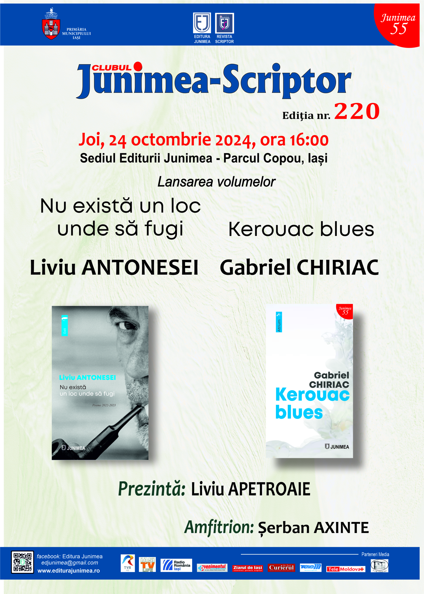 “Toamna e un andante melancolic și grațios, care pregatește admirabilul adagio al iernii’ (George Sand). În spiritul acestei idei, vă invităm sâmbătă, 3 Noiembrie, ora 19, la o searată muzicală pe acorduri de folk, blues și country cu arome de toamnă, în cadrul unui eveniment muzical intitulat sugestiv ‚Folk’n’Frunze’, susținut de cantautorii Cristi Corcioveanu (Tecuci), Cezar Popescu (Iași) și Liviu Ciulei (Dorohoi), la Casa de Cultură a Municipiului ,Mihai Ursachi’ din Iași.