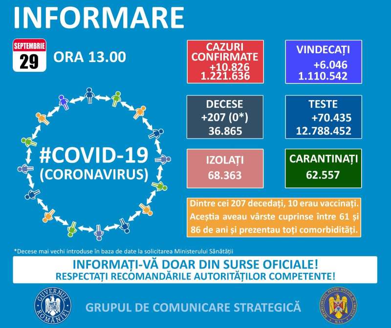 Din totalul deceselor (619) de până la 26 aprilie, 73,5% au fost înregistrate la persoane de peste 60 ani, 86,4% dintre acestea aveau comorbidităţi asociate, în timp ce 64,4% au fost observate la bărbaţi, indică Raportul din 28 aprilie, conform site-ului http://cnscbt.ro/.