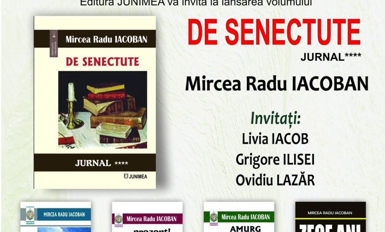 Miercuri 19 februarie 2025 ora 16, la sediul Editurii Junimea din Parcul Copou va avea loc lansarea volumului DE SENECTUTE – Jurnal****, autor Mircea Radu Iacoban. Invitati: Livia Iacob, Grigore Ilisei, Ovidiu Lazăr. Amfitrion: Simona Modreanu.