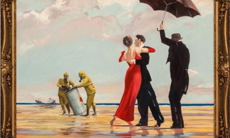 O pictură rară a artistului de stradă Banksy, inspirată de o pânză celebră a pictorului scoţian Jack Vettriano, recent decedat, a fost vândută marţi pentru aproape 4,3 milioane de lire sterline (peste 5 milioane de euro). Numită „Crude Oil (Vettriano)” şi supranumită uneori „Toxic beach”, pictura a fost vândută la Sotheby’s în capitala britanică. Pictura a fost prezentată pentru prima dată la expoziţia majoră a lui Banksy din 2005.