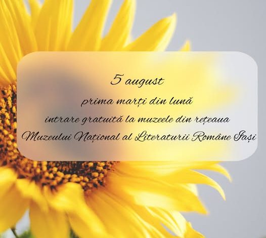 Marți, 5 august 2025, intrarea la muzeele din rețeaua Muzeului Național al Literaturii Române Iași este gratuită.