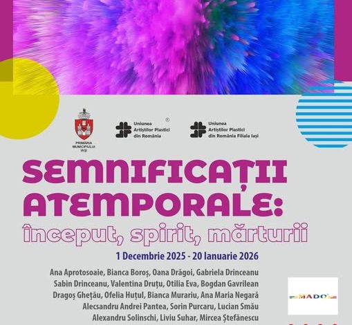Uniunea Artiștilor Plastici din România – Filiala Iași împreună cu Primăria Municipiului Iași au plăcerea de a vă invita la expoziția intitulată „SEMNIFICAȚII ATEMPORALE: început, spirit, mărturii” organizată pentru a celebra spiritul, istoria și viitorul artistic și cultural al orașului Iași.