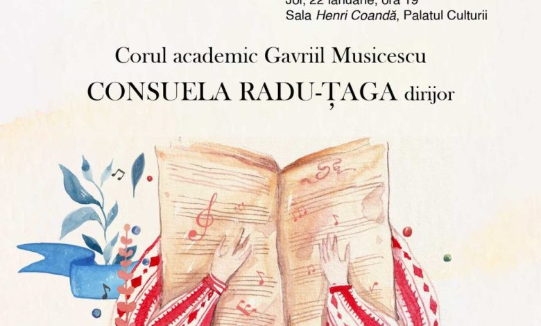Joi, 22 ianuarie 2026, ora 19, în Sala „Henri Coandă”, Palatul Culturii din Iași – Complexul Muzeal Național „Moldova” va avea loc un concert coral omagial, dedicat Zilei Unirii Principatelor Române, concert susținut de CORUL ACADEMIC „GAVRIIL MUSICESCU”, Dirijor: CONSUELA RADU-ȚAGA.