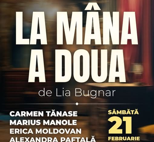 Ateneul Național din Iași deschide stagiunea premierelor din anul 2026 cu o producție eveniment, propunând publicului spectacolul „La mâna a doua”, scris și regizat de Lia Bugnar. Evenimentul, programat pe 20 și 21 februarie 2026, de la ora 19:00, la Sala Unirii, marchează prima premieră de teatru a anului pentru instituția ieșeană, debutând sub semnul calității și al introspecției umane într-o montare ce promite să devină un punct de referință al sezonului.