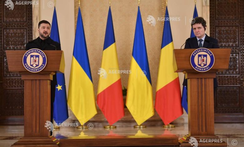 ‘Lucrăm și asupra deschiderii a noi puncte de trecere a frontierei între cele două state. Avem noi formate de colaborare bilateral și trilateral. Sper că în acest format vom colabora în continuare. Am discutat și formatul B9. Domnul președinte m-a invitat să particip aici în mai la ședința B9 din București și mulțumesc pentru respectul pe care România îl manifestă față de cetățenii noștri care se află aici în România’, a spus liderul ucrainean, într-o conferință de presă susținută la Palatul Cotroceni alături de președintele Nicușor Dan.