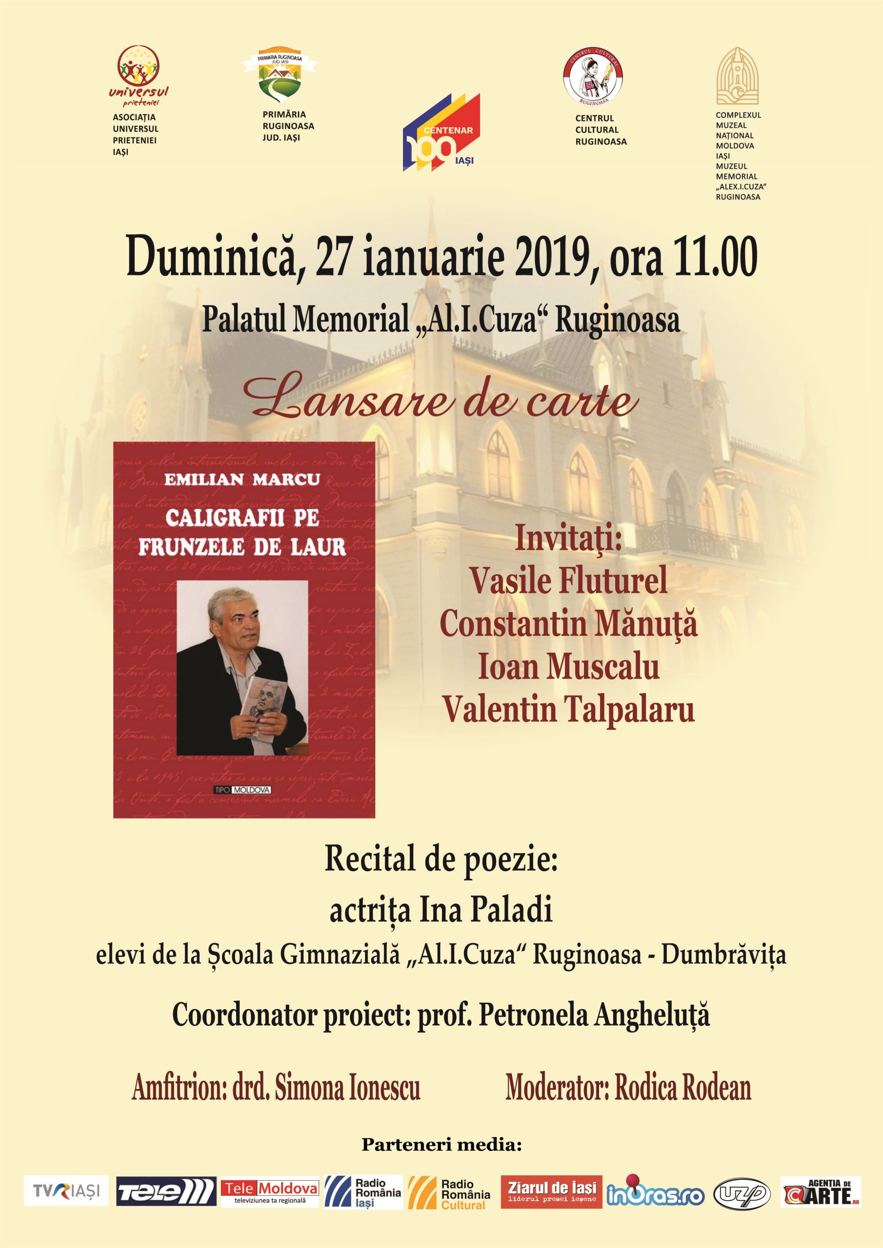 Duminică, 27 ianuarie, de la ora 11.00, la Palatul Memorial „Alexandru Ioan Cuza” de la Ruginoasa va avea loc lansarea…