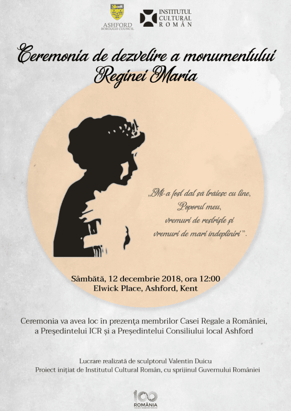 ICR: O statuie a Reginei Maria, amplasată la Ashford în Marea Britanie; dezvelirea monumentului – pe 12 decembrie