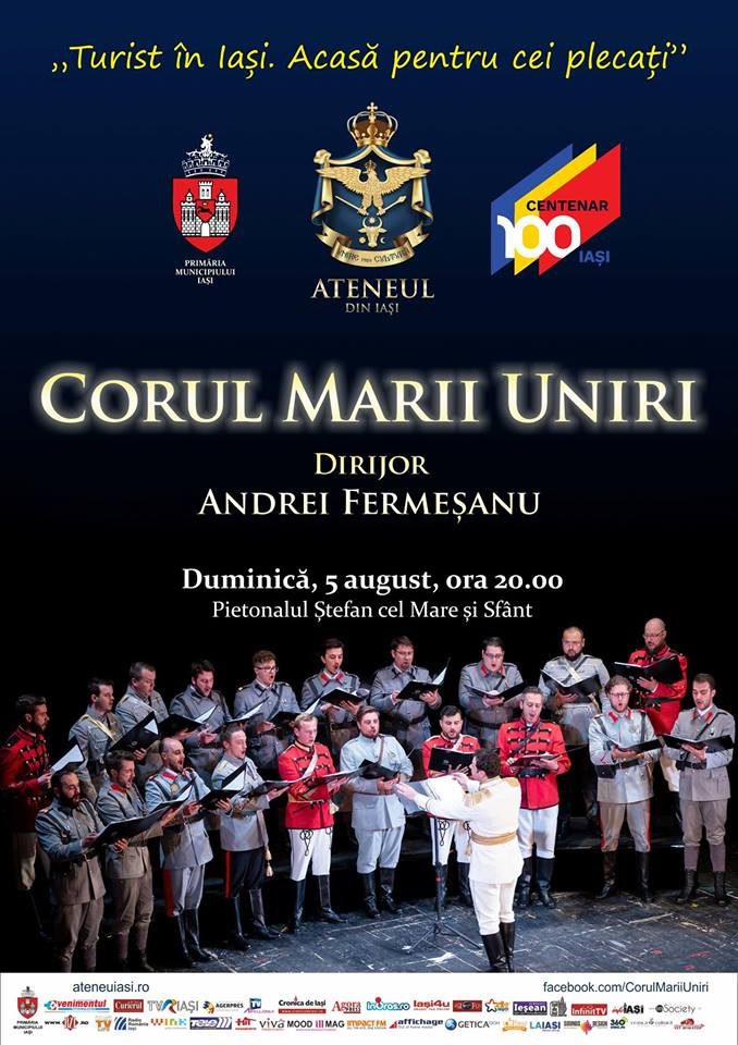 Duminică, 5 august, începând cu ora 20.00, pe pietonalul Ştefan cel Mare şi Sfânt, ieşenii sunt invitaţi la concertul Corul…