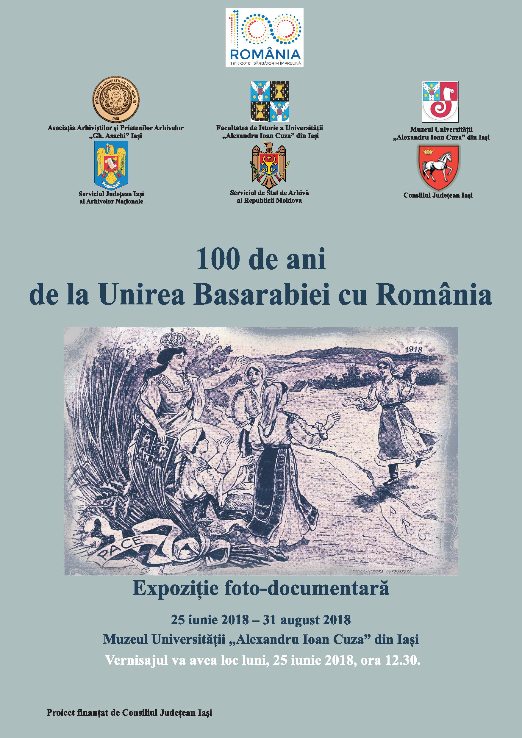 Luni, 25 iunie, ora 12.30, la Muzeul Universității va avea loc vernisajul expoziției „100 de ani de la Unirea Basarabiei…