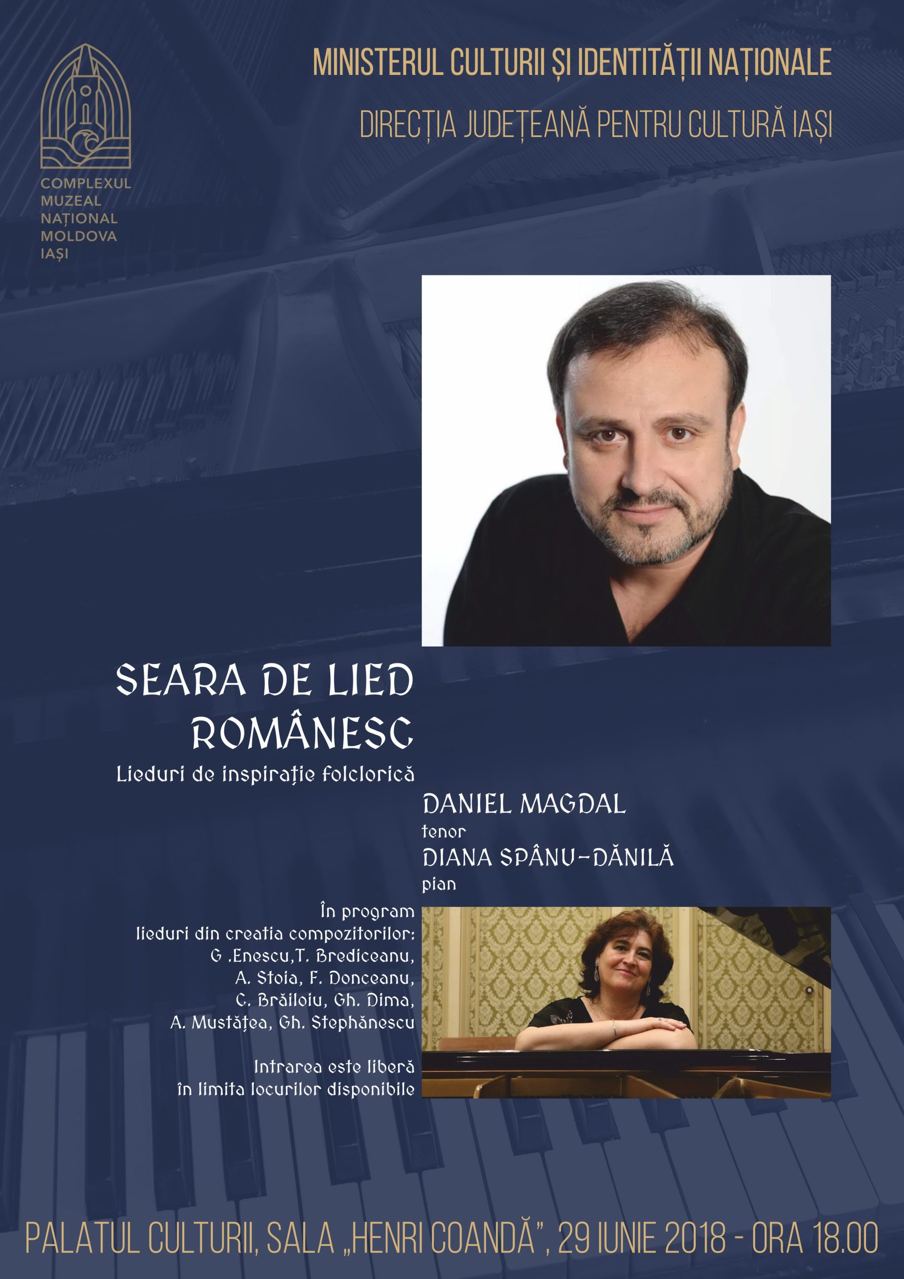Complexul Muzeal Național „Moldova” Iași și Direcția Județeană pentru Cultură Iași invită iubitorii de muzică la „Seara de lied românesc”,…