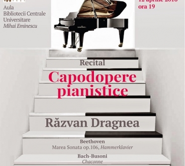 Marti, 12 aprilie 2016, ora 19:00 Recital – Capodopere pianistice Biblioteca Centrală Universitară „Mihai Eminescu” Solist: Răzvan Dragnea,…
