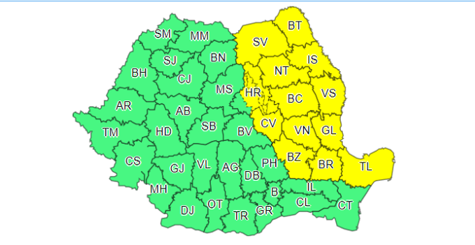 Meteorologii au emis un nou cod galben de vremea rea valabil pentru judeţul Iaşi, începând din această noapte şi până…