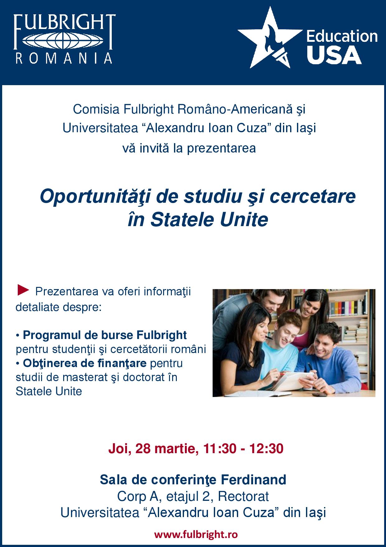 Prezentarea „Oportunități de studiu și cercetare în Statele Unite”
