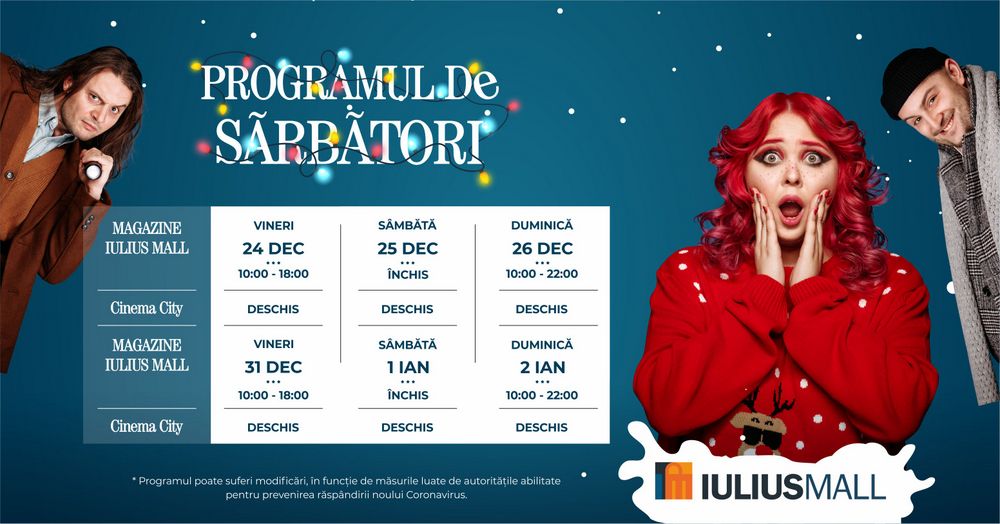 Cinema City este deschis în prima zi de Crăciun și pe 1 ianuarie, iar Iulius Mall Iași te așteaptă la shopping în a doua zi de sărbători