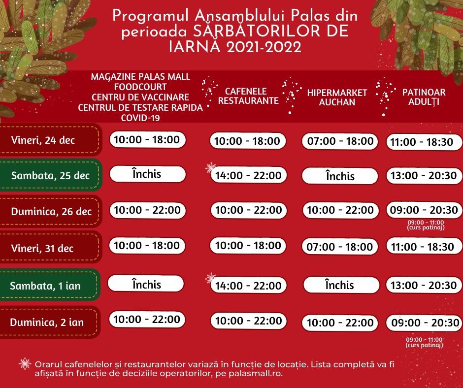 Palas, deschis în a doua zi de Crăciun și pe 2 ianuarie 2022