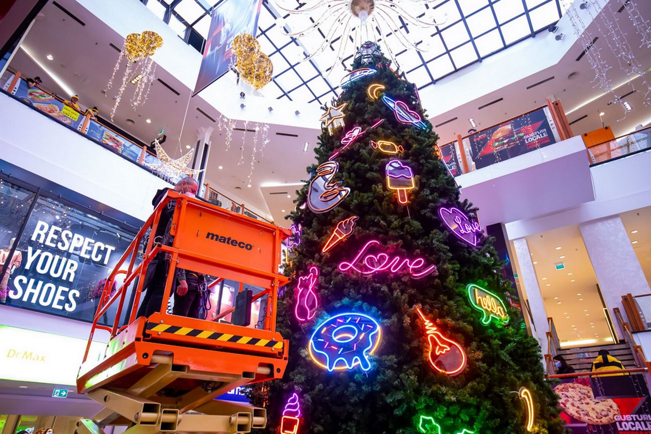 Iulius Mall Iași a despodobit bradul alături de clienții săi – 80 de norocoși au plecat acasă cu o decorațiune neon!