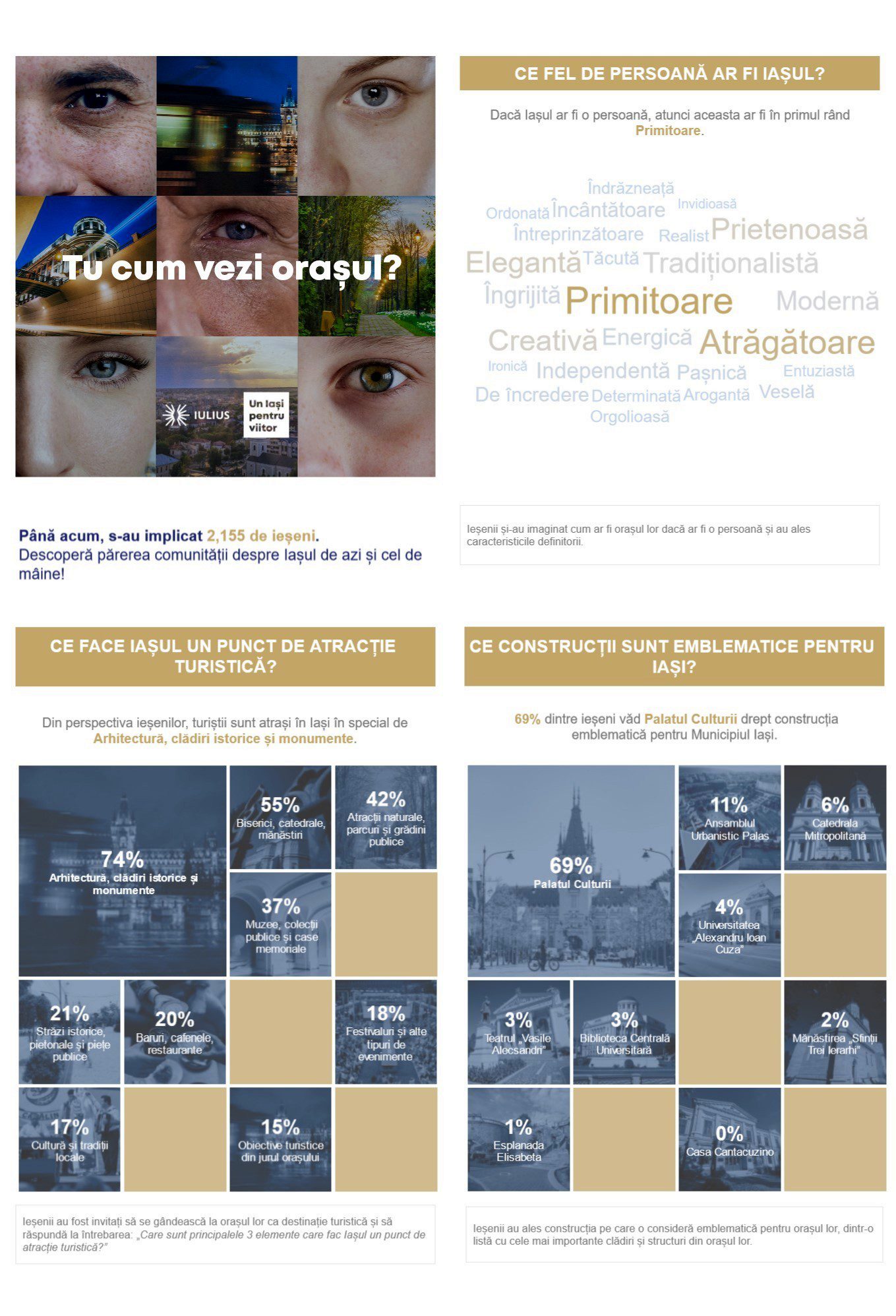 Ieșenii își doresc spații verzi, dezvoltări care să atragă investitori și o mai bună infrastructură a orașului, conform rezultatelor preliminare ale cercetării realizate de IULIUS
