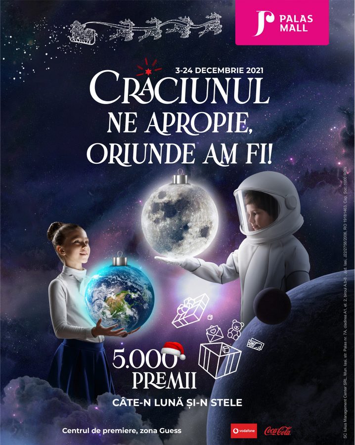 Fii „turist spațial” la Palas! Crăciunul Cosmic îl aduce pe Moșu` în haine de astronaut, dar și premii „câte-n lună și-n stele”