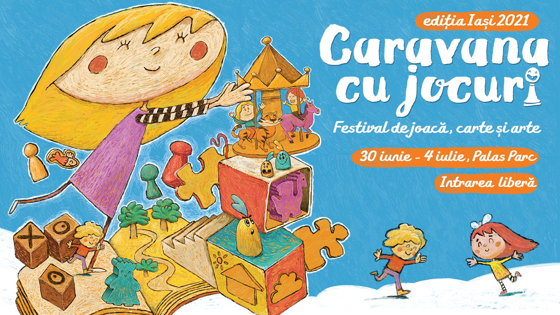 Vacanța de vară a venit și în parcul Palas, adusă de Caravana cu Jocuri – festival de joacă, carte și arte